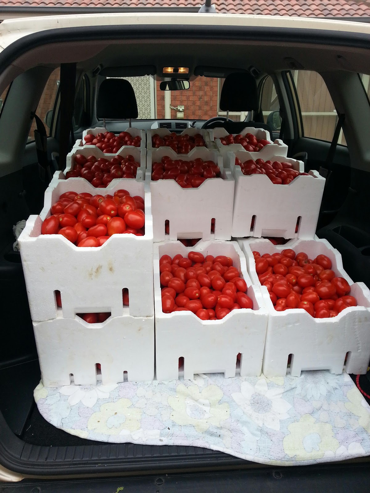 If you go to any suburbs that have an Italian community you'll most probably see signs for people selling "sauce tomatoes". Sauce tomatoes are normally more ripe than usual, which makes them ideal to turn into sauce. We bought 16 boxes of tomatoes from the local Italian social club.2. Wash and cut the tomatoes